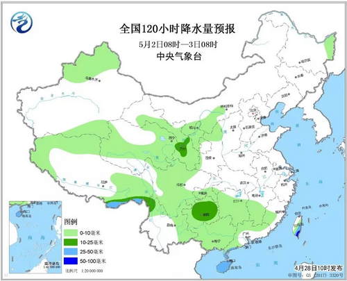 预计5月2日至3日,新疆、西北地区东部、华北中南部等地先后降水,多以小雨为主。4日前后,河北北部、北京、天津等地有4~6级偏北风,气温下降4~8℃。